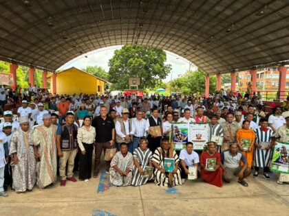 Yurimaguas, 28 de noviembre.– Hoy, los apus de 14 comunidades nativas de la provincia de Alto Amazonas, en Yurimaguas, recibieron oficialmente los títulos de comunal de sus territorios, en una ceremonia organizada por la Gerencia Regional de Desarrollo Agrario