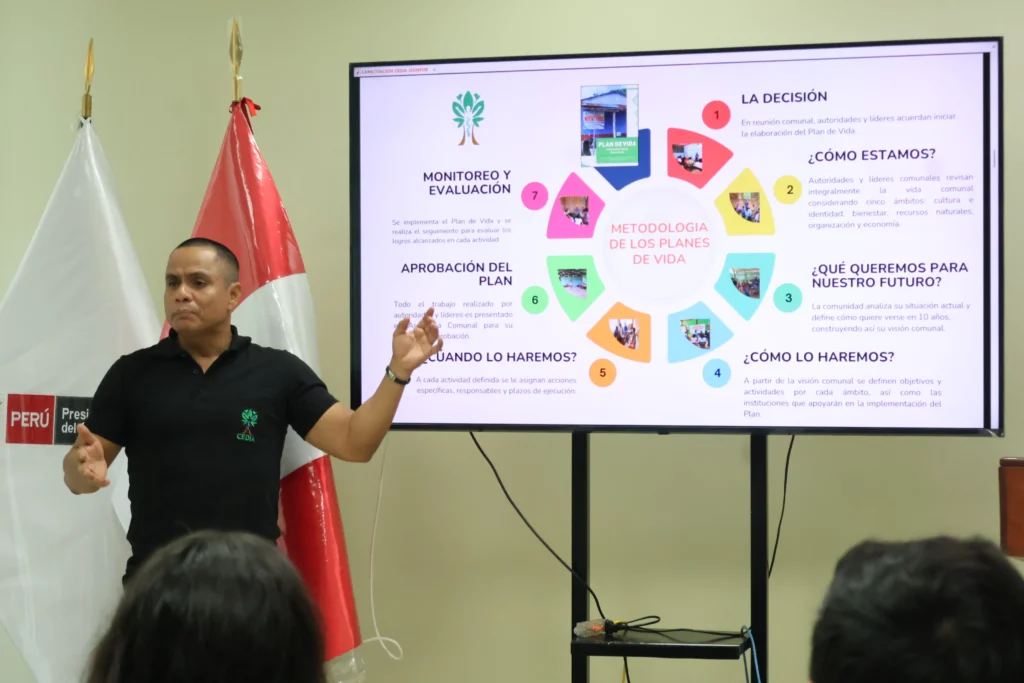 Estas capacitaciones, enmarcadas en el Plan de trabajo 2025 elaborado entre CEDIA y OSINFOR, no solo busca facilitar el soporte técnico durante la primera etapa de acogimiento al mecanismo, sino también garantizar la implementación y el seguimiento de las actividades establecidas en los planes de conservación, lo que implica a su vez, integrar estas actividades a los planes operativos anuales de cada comunidad.